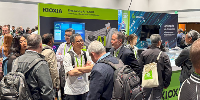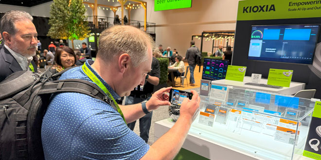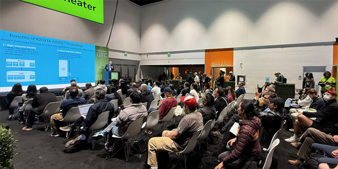 此次展会上,铠侠发布了专为 AI 应用打造的大容量 KIOXIA LC9 系列 122.88 TB NVMe 企业级 SSD,并在展位上进行了现场运行演示。从驱动向量数据库到实现更快速的模型训练与推理,KIOXIA LC9 系列 SSD 旨在支持大规模的 AI 工作负载。客户与媒体对新产品反响热烈,竞相向现场专家进行交流与咨询,探寻这款 SSD 如何能够助力提升 AI 基础设施的能效。