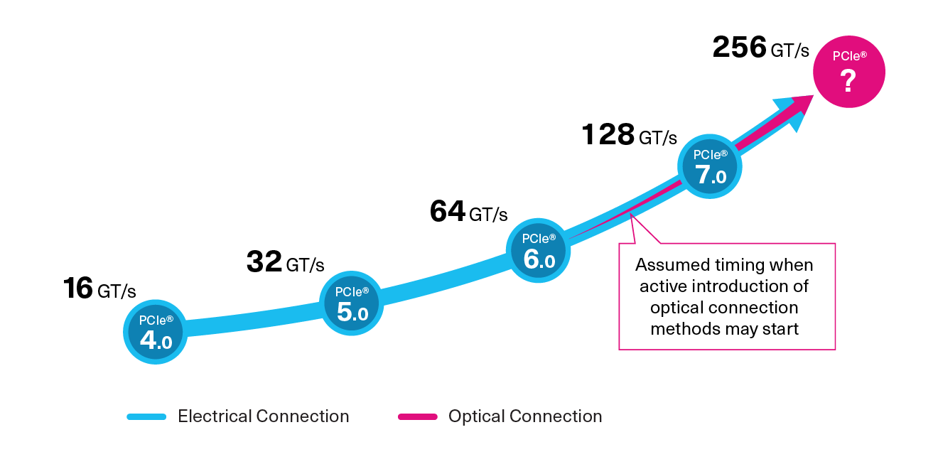 PCI-SIG 组织正在对下一代标准(PCIe 7.0)进行评估,并积极推进相关举措,旨在将光连接技术与传统电气连接技术一并纳入标准规范之中。